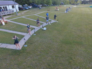 Five straight-away targets are thrown to each competitor in a randomized sequence from each of five stations.